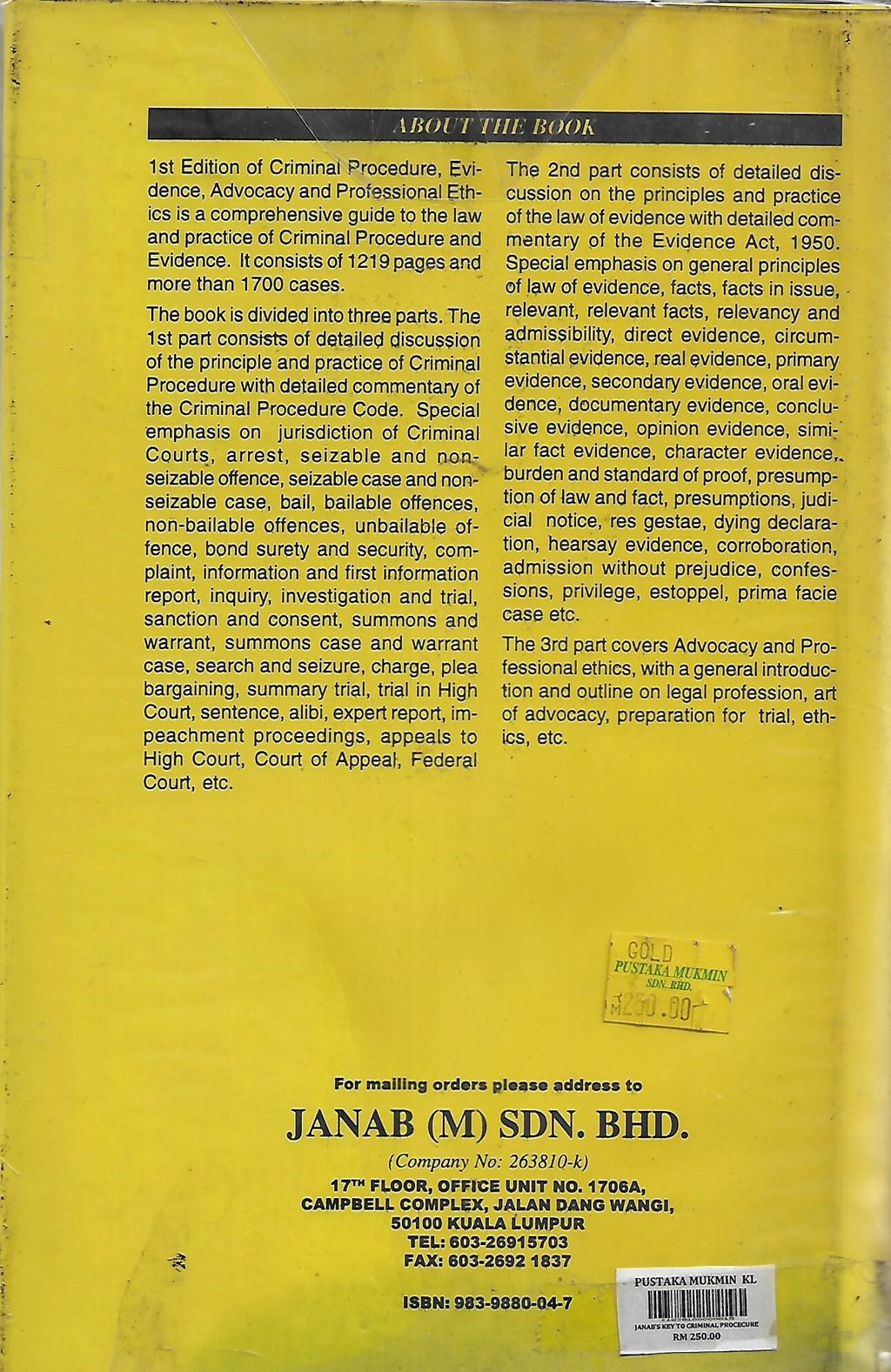 [20% Discounts] Janab's Key to Criminal Procedure Evidence Advocacy and Professional Ethics in Malaysia and Singapore