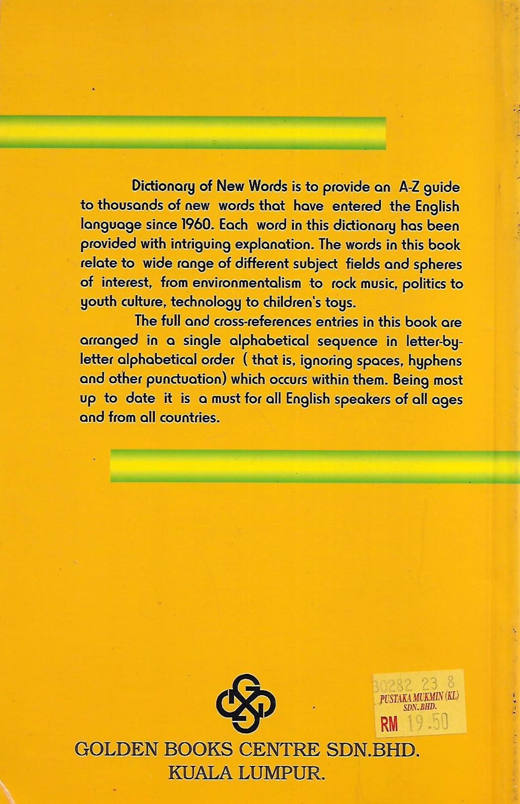 Dictionary of New Words is to provide an A-Z guide to thousands of new words that have entered the English language since 1960. Each word in this dictionary has been provided with intriguing explanation. The words in this book relate to wide range of different subject fields and spheres of interest, from environmentalism to rock music, politics to youth culture, technology to children's toys.