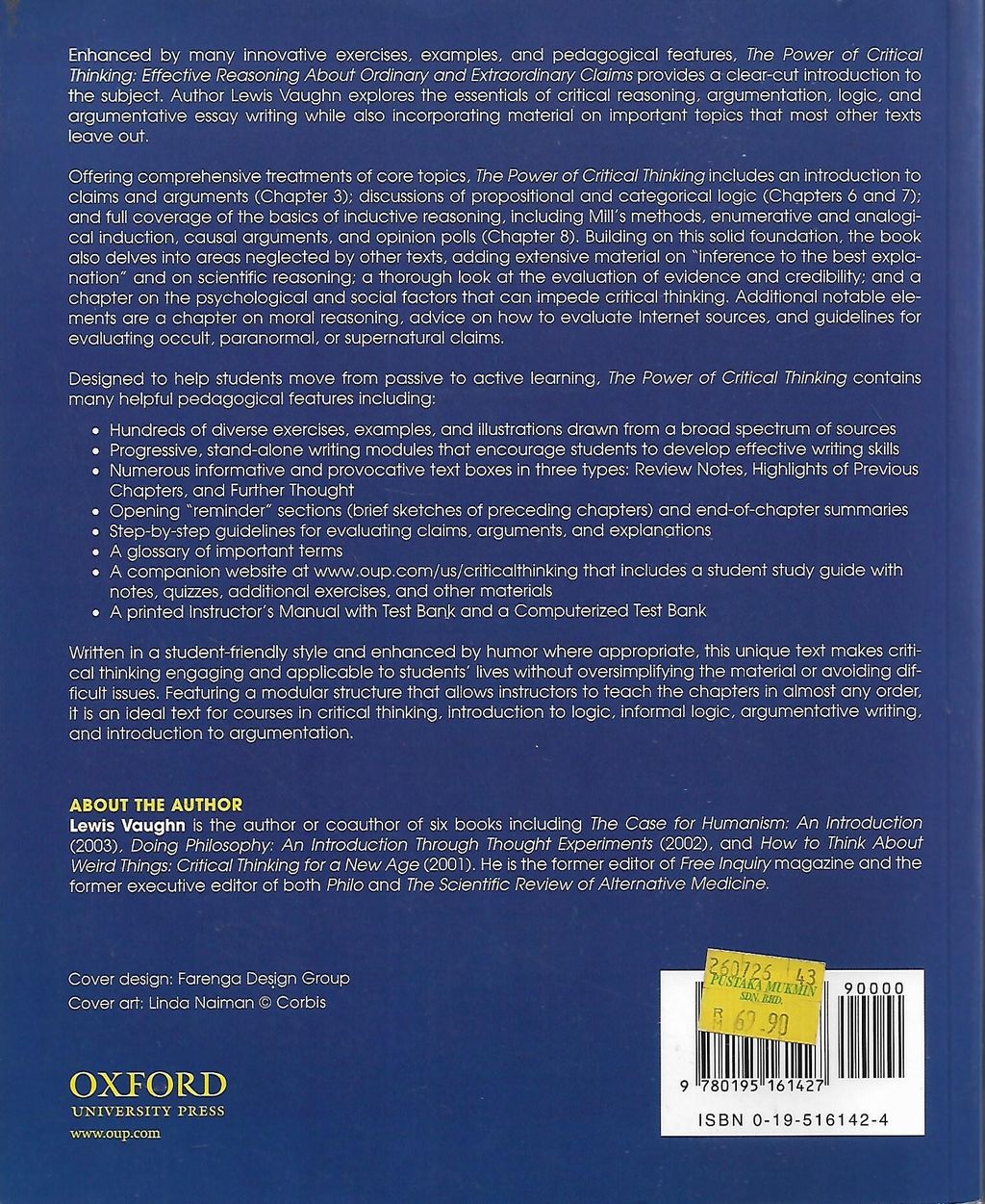 Enhanced by many innovative exercise, examples and pedagogical features,, The Power of Critical Thinking: Effective Reasoning About Ordinary and extraordinary Claims provides a clear-cut introduction to the subject. Author Lewis Vaughn explores the essentials of critical reasoning, argumentation, logic, and argumentative essay writing while also incorporating material and important topics that most other texts leave out.