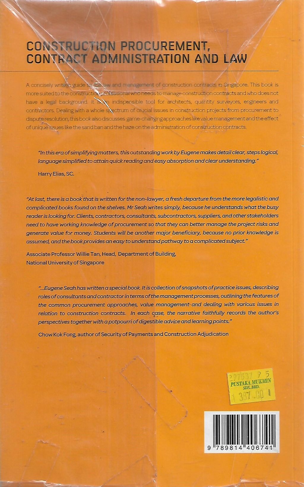 A concisely written guide to the law and management of construction contracts in Singapore. This book is more suited to the construction professional who needs to manage construction contracts and who does not have a legal background. It is an indispensable tool for architects, quantity surveyors, engineers and contractors. Dealing with a whole spectrum of crucial issues in construction projects from procurement to dispute resolution, this book also discusses game-changing approaches like value management and the effect of unique issues like the sand band and the haze on the administration of construction contracts.