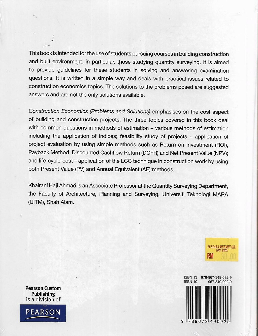{Pearson} Construction Economics Problems and Solutions
