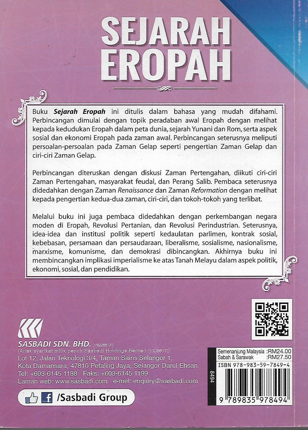 Pembaca juga didedahkan dengan perkembangan negara moden di Eropah, Revolusi Pertanian, dan Revolusi Perindustrian. Seterusnya, idea-idea dan institusi politik seperti kedaulatan parlimen, kontrak sosial, kebebasan, persamaan dan persaudaraan, liberalisme, sosialisme, nasionalisme, marxisme, komunisme, dan demokrasi dibincangkan. Akhirnya buku ini membincangkan implikasi imperialisme ke atas Tanah Melayu dalam aspek politik, ekonomi, sosial dan pendidikan.