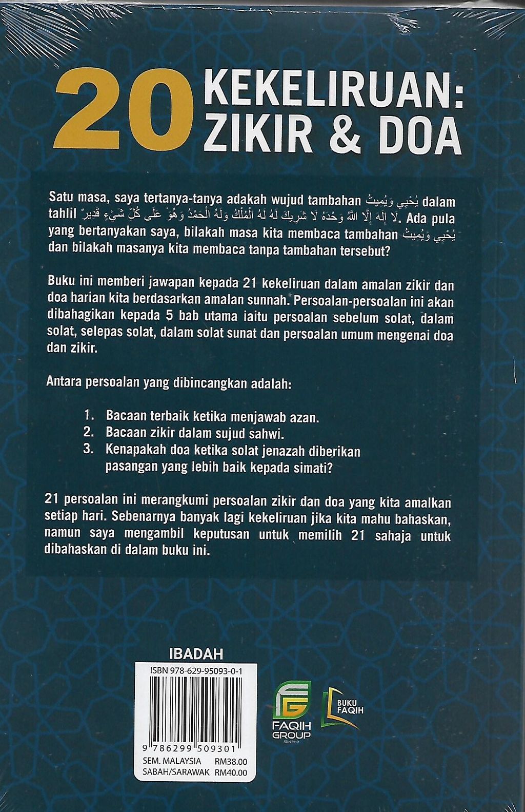 Buku ini memberi jawapan kepada 21 kekeliruan dalam amalan zikir dan doa harian kita berdasarkan amalan sunnah. Persoalan-persoalan ini akan dibahagikan kepada 5 bab utama iaitu persoalan sebelum solat, dalma solat, selepas solat, dalam solat sunat dan persoalan umum mengenai doa dan zikir.