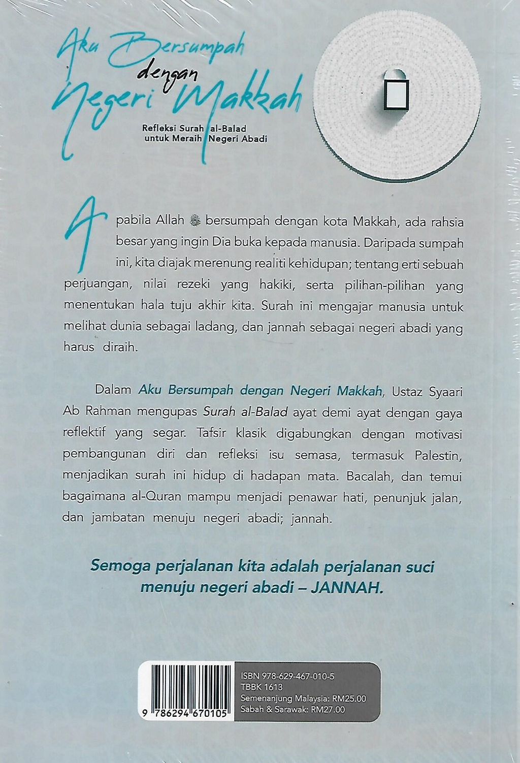 Dalam Aku Bersumpah dengan Negeri Makkah, Ustaz Syaari Ab Rahman menguspas Surah al-Balad ayat demi ayat dengan gaya reflektif yang segar. Tafsir klasik digabungkan dengan motivasi pembangunan diri dan refleksi isu semasa, termasuk Palestin, menjadikan surah ini hidup di hadapan mata. Bacalah, dan temuui bagaimana al-Quran mampu menjadi penawar hati, penunjuk jalan, dan jambatan menuju negeri abadi; jannah