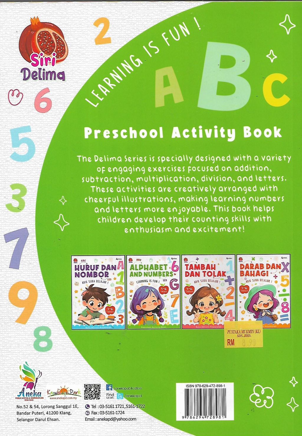 The Delima Siries is specially designed with a variety of engaging exercises focused on addition, substraction, multiplication, division and letters. These activities are creatively arranged with cheerful illustrations, making learning numbers and letters more enjoyable. This book helps children develop their counting skills with enthusiasm and excitement!