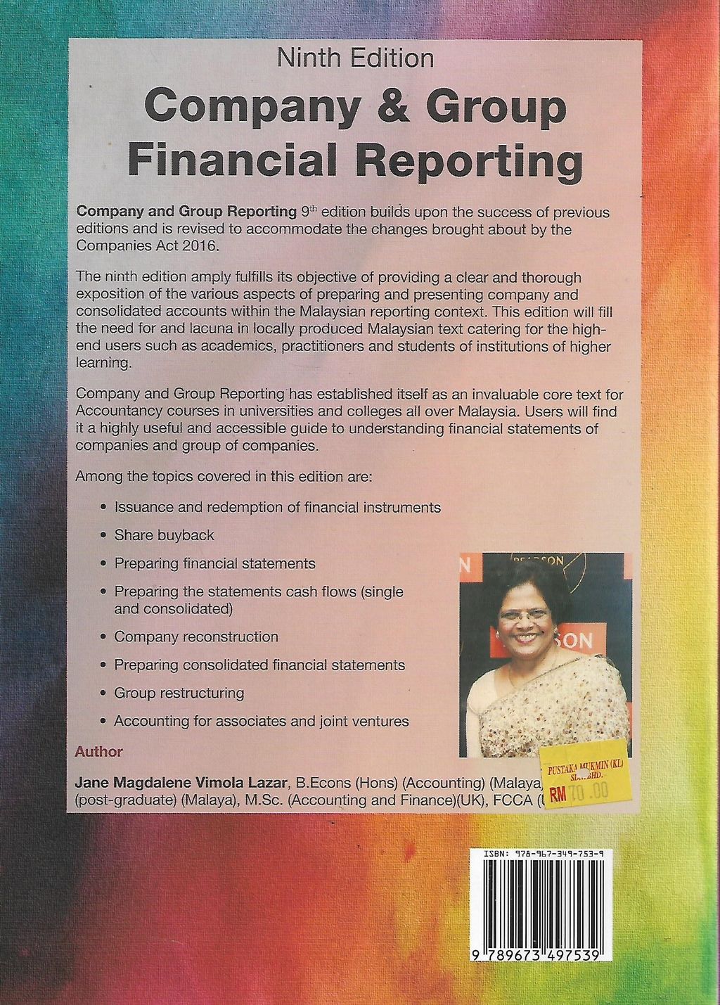 The 9th edition amply fulfills its objective of providing a clear and thorough exposition of the various aspects of preparing and presenting company and consolidated accounts within the Malaysian reporting context. This edition will fill the need for and lacuna in locally produced Malaysian text catering for the high-end users such as academics, practitioners and students of institutions of higher learning.