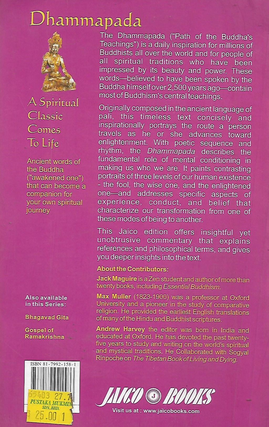 The Dhammapada ("Path of the Buddha's Teaching) is a daily inspiration for millions of Buddhists all over the world and for people of all spiritual traditions who have been impresses by its beauty and power. These words-believed to have been spoken by the Buddha himslef over 2,500 years ago-contain most of Buddhism' central teachings.