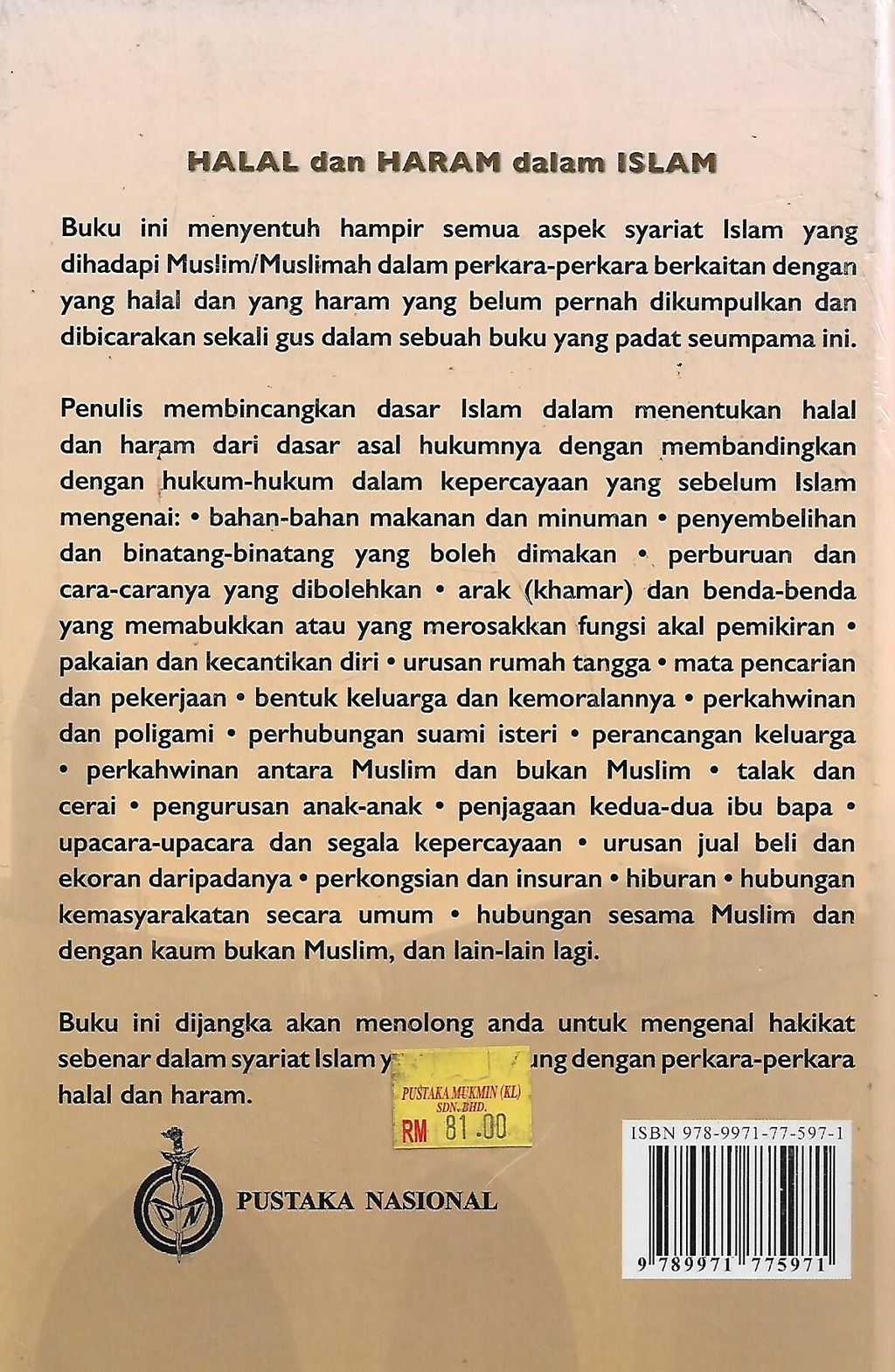 Buku ini menyentuh hampir semua aspek syariat Islam yang dihadapi Muslim/Muslimah dalam perkara-perkara berkaitan dengan yang halal dan yang haram yang belum pernah dikumpulkan dan dibicarakan sekali gus dalam sebuah buku yang padat seumpama ini.