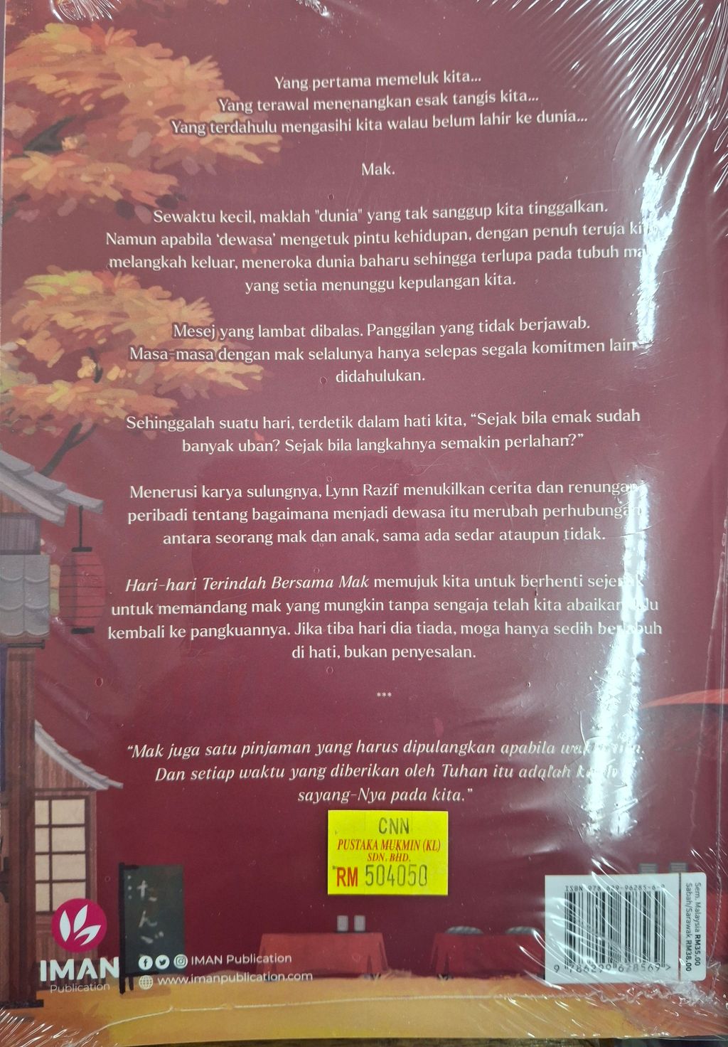 Hari-hari Terindah Bersama Mak memujuk kita untuk berhenti sejenak untuk memandang mak yang mungkin tanpa sengaja telah kita abaikan, lalu kembali ke pangkuannya. Jika tiba hari dia tiada, moga hanya sedih berlabuh di hati, bukan penyesalan.