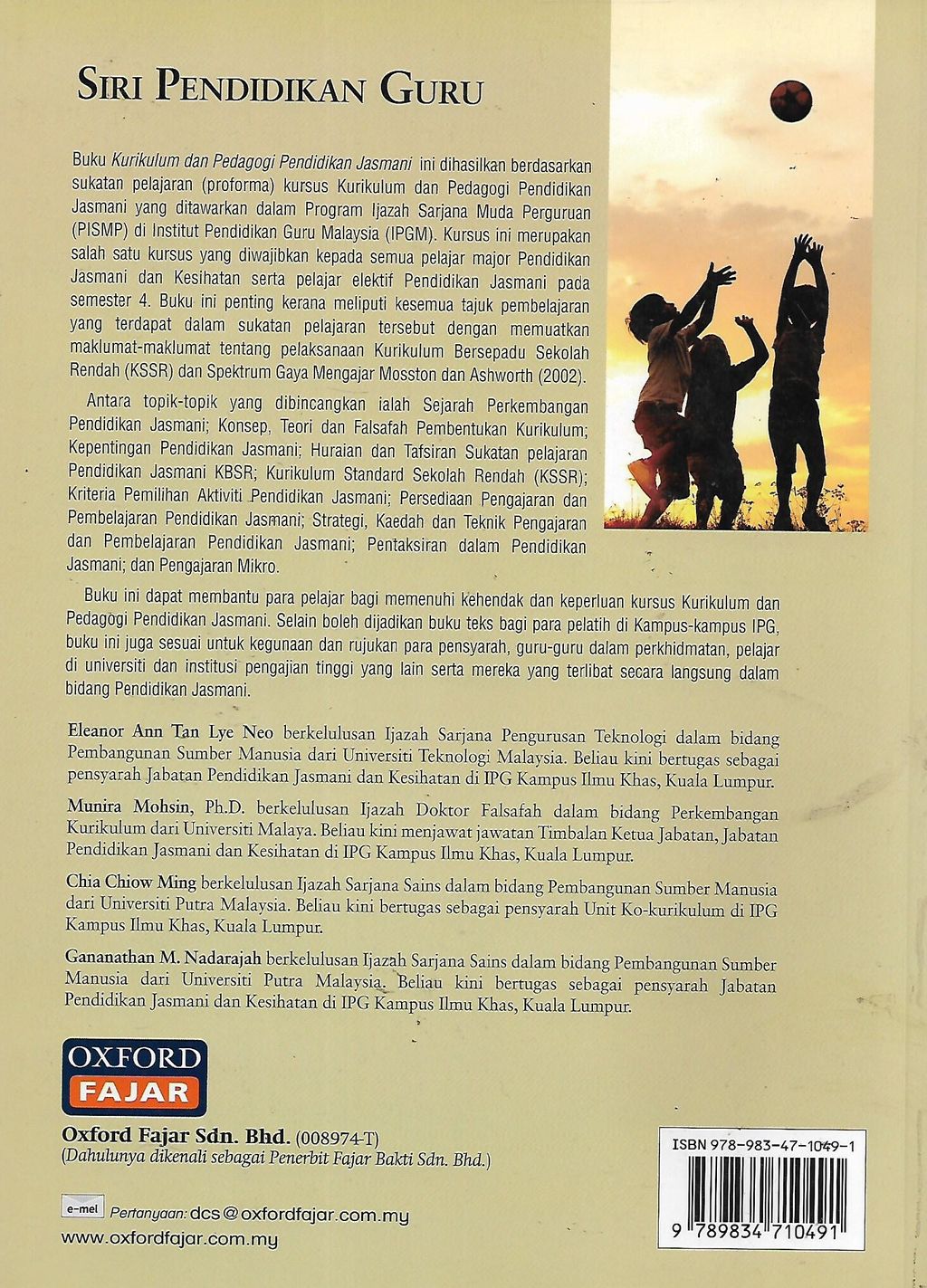 Buku Kurikulum dan Pedagogi Pendidikan Jasmani ini dihasilkan berdasarkan sukatan pelajaran (proforma) kursus Kurikulum dan Pedagogi Pendidikan Jasmani yang ditawarkan dalam Program Ijazah Sarjana Muda Perguruan (PISMP) di Institut Pendidikan Guru Malaysia (IPGM).