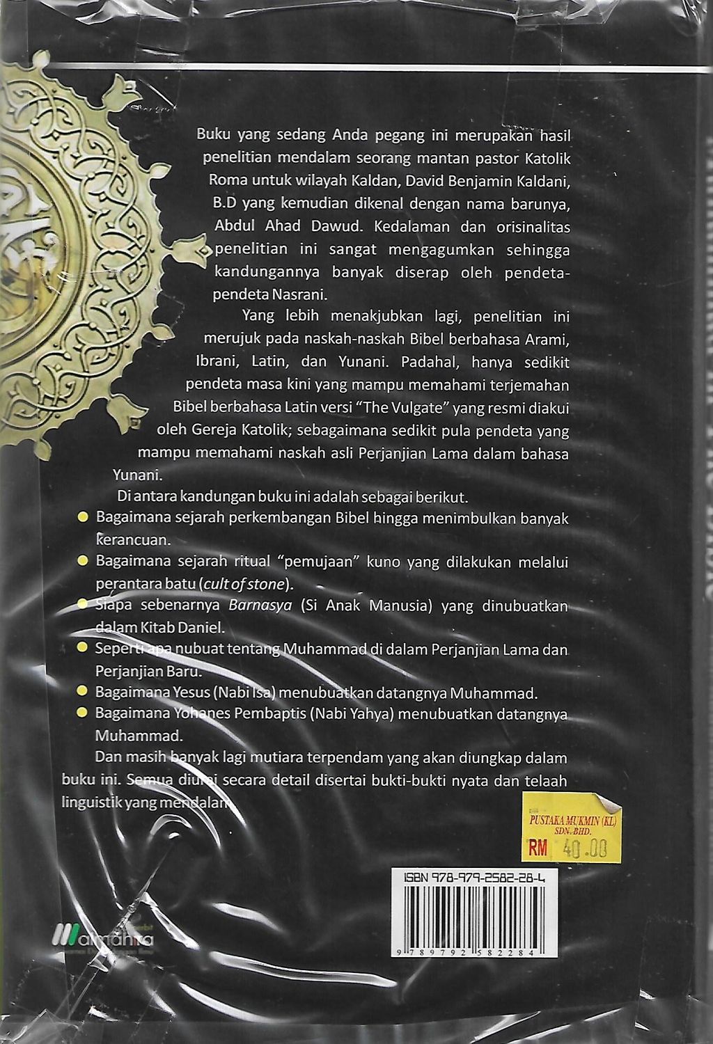 Buku ini merupakan hasil penelitian mendalam seorang mantan pastor Katolik Roma untuk wilayah Kalda, David Benjamin Kaldani, B.D yang kemudian dikenal dengan nama barunya, Abdul Ahad Dawud. Kedalaman dan orisinalitas penelitian ini sangat sengagumkan sehingga kandungannya banyak diserap oelh pendeta-pendeta Nasrani.