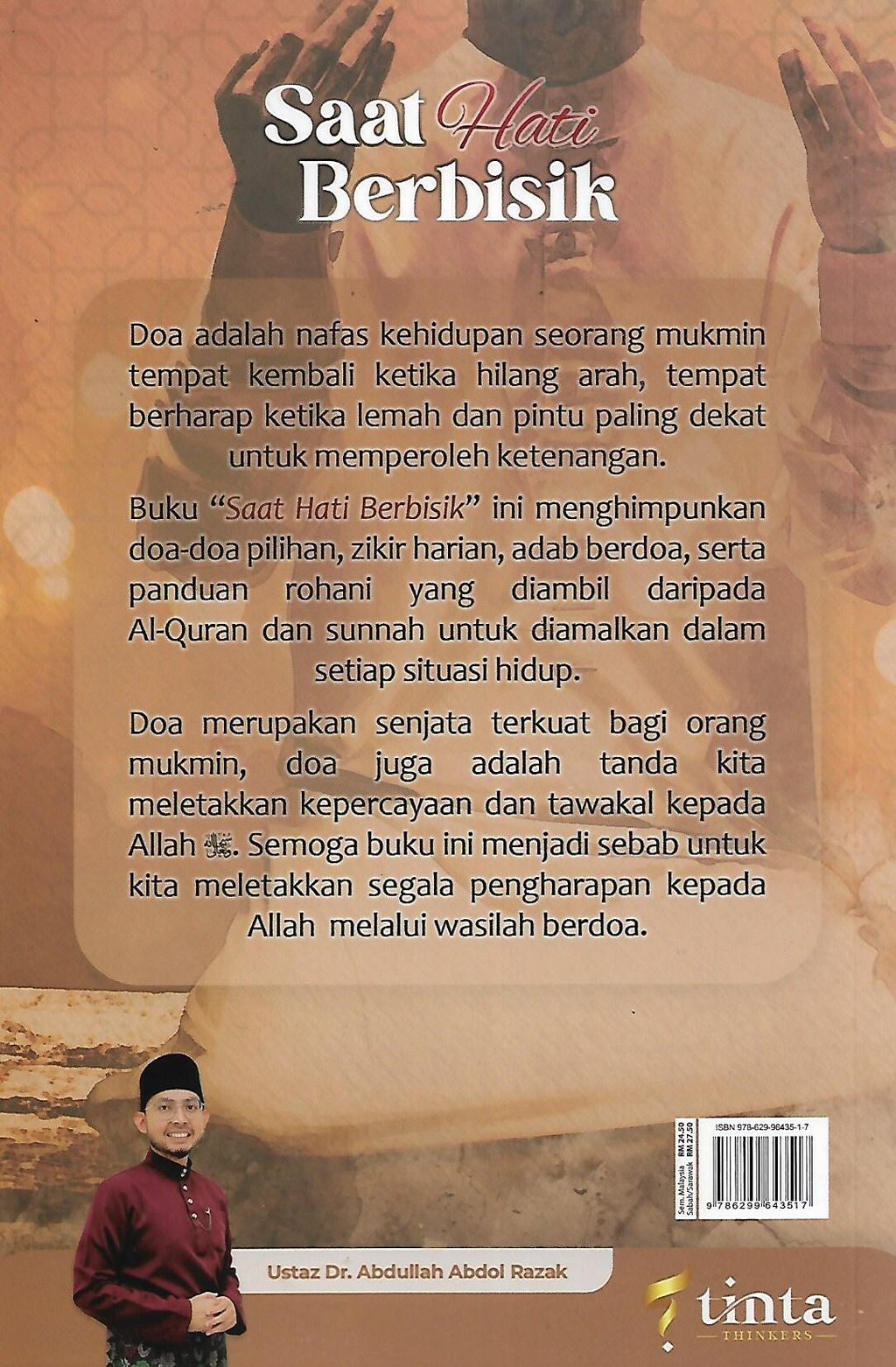 Buku "Saat Hati Berbisik" ini menghimpunkan doa-doa pilihan, zikir harian, adab berdoa, serta panduan rohani yang diambil daripada Al-Quran dan sunnah untuk diamalkan dalam setiap situasi hidup.