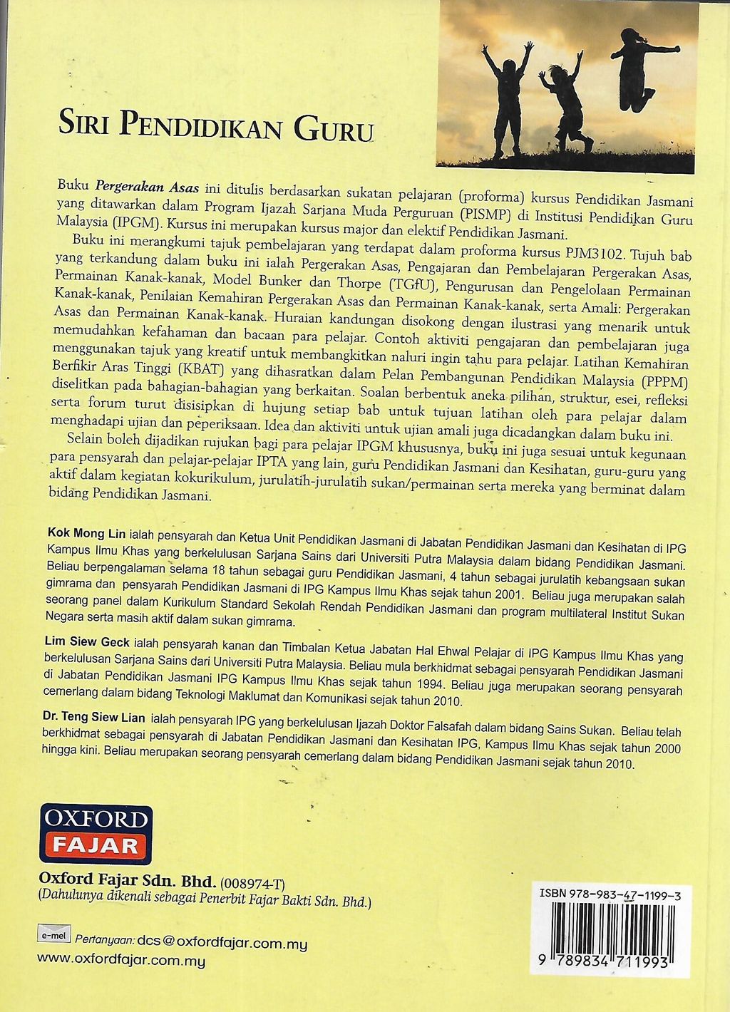 Buku Pergerakan Asas ini ditulis berdasarkan sukatan pelajaran kursus Pendidikan Jasmani yang ditawarkan dalam Program Ijazah Sarjana Muda Perguruan (PISMP) di Institut Pendidikan Guru Malaysia. (IPGM). Kursus ini merupakan kursus major dan elektif Pendidikan Jasmani.