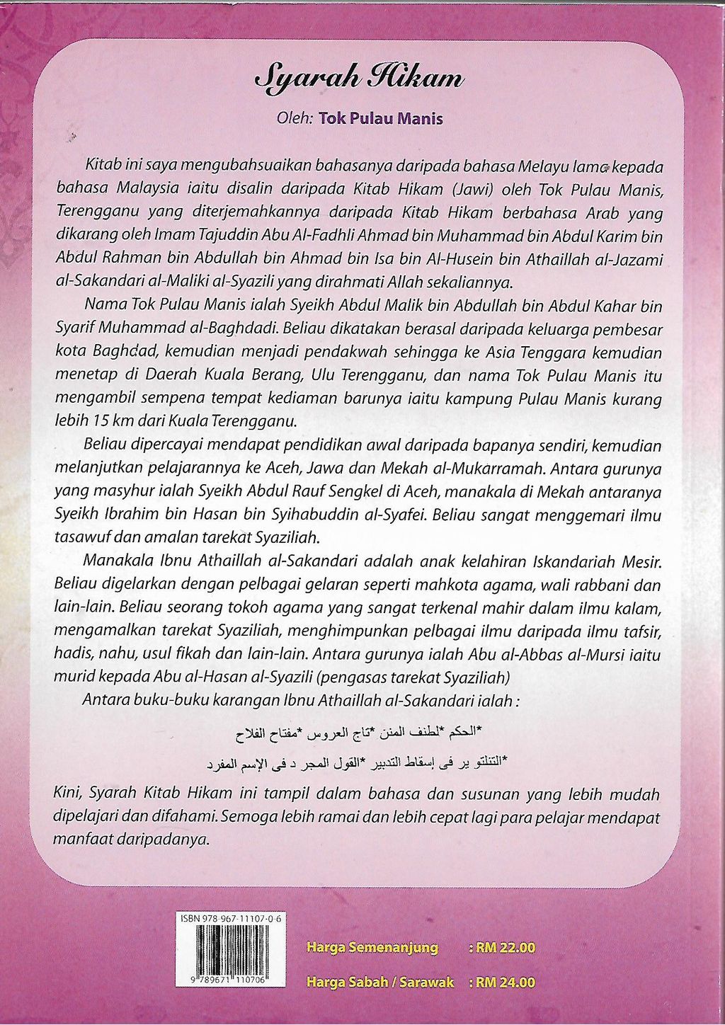 Ini adalah sebuah kitab kecil pada ilmu tasawuf yang mengupaskan kitab hikam yang dikarang oleh Ibnu Athaillah. Tujuan kitab ini adalah untuk menjadi bahan pembelajaran bagi sekalian kaum muslimin yang berminat untuk mendalami ilmu tasawuf di peringkat pertengahan, terutama bagi pelajar-pelajar sekolah pondok untuk melengkapkan diri mereka sebagai pengetahuan asas mengenai ilmu tasawuf.