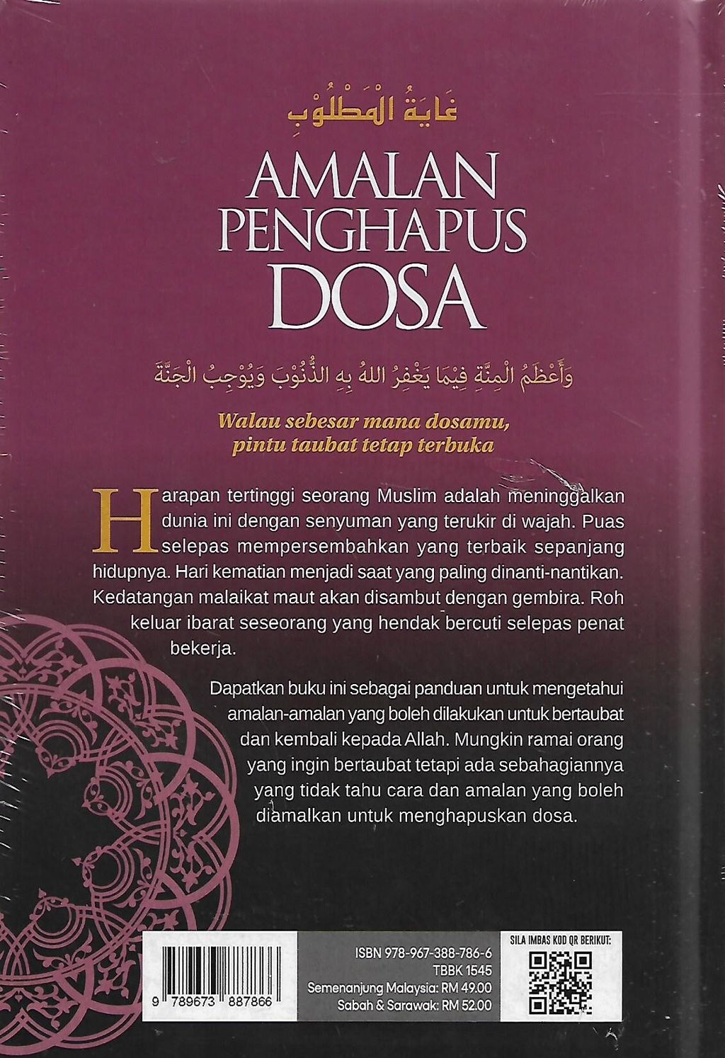 Buku ini menghimpukan ayat-ayat al-Quran, hadis-hadis, kalam ulama serta syair-syair berkenaan amalan menghapuskan dosa. Kami melihat kitab ini amat wajar diterjemahkan sebagai pendorong kepada kita, umat manusia yang sering terpalit dengan dosa. Boleh dikatakan setiap hari kita melakukan dosa. Sama ada dosa dengan Allah atau yang bersangkutan dengan manusia. Tambahan pula, teknologi dan media yang tidak terbatas membuatkan umat masa kini lebih mudah terdedah kepada dosa.