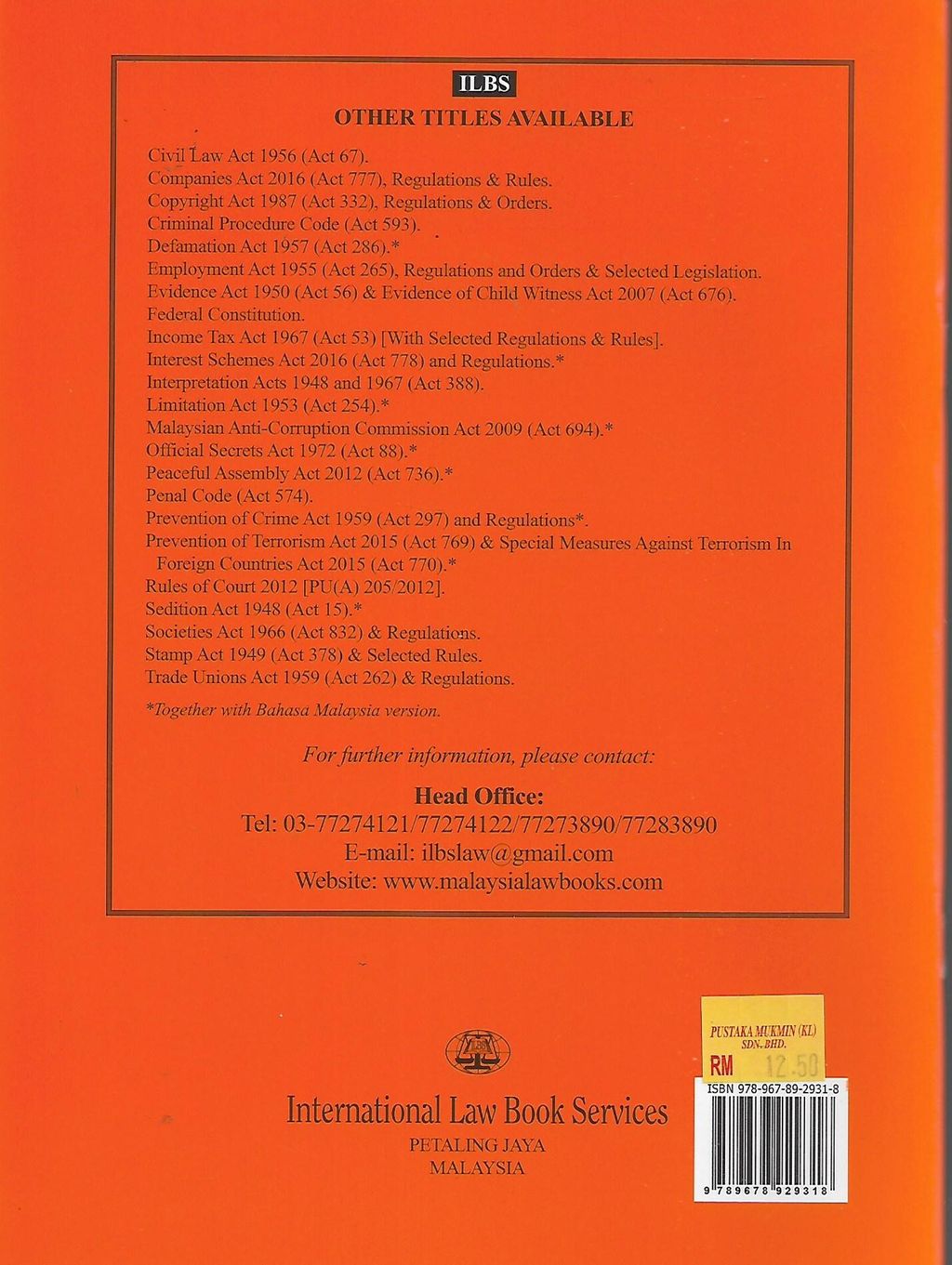 - Act 331 – An Act to make provision for the collection, conservation, bibliographical control and use of library material published in Malaysia and to provide for matters connected therewith.