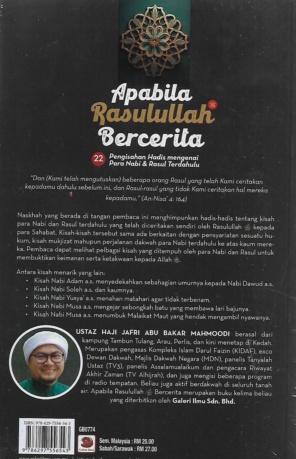 Buku ini menghimpunkan hadis-hadis tentang kisah para Navi dan Rasul terdahulu yang telah diceritakan sendiri oleh Rasulullah saw kepada para Sahabat. Kisah-kisah tersebut sama ada berkaitan dengan pensyariatan sesuatu hukum, kisah mukjizat mahupun perjalanan dakwah para Nabi terdahulu ke atas kaun mereka. Pembaca dapat melihat pelbagai kisah yang ditempuh oleh para Nabi dan Rasul untuk membuktikan keimanan serta ketakwaab kepada Allah swt.