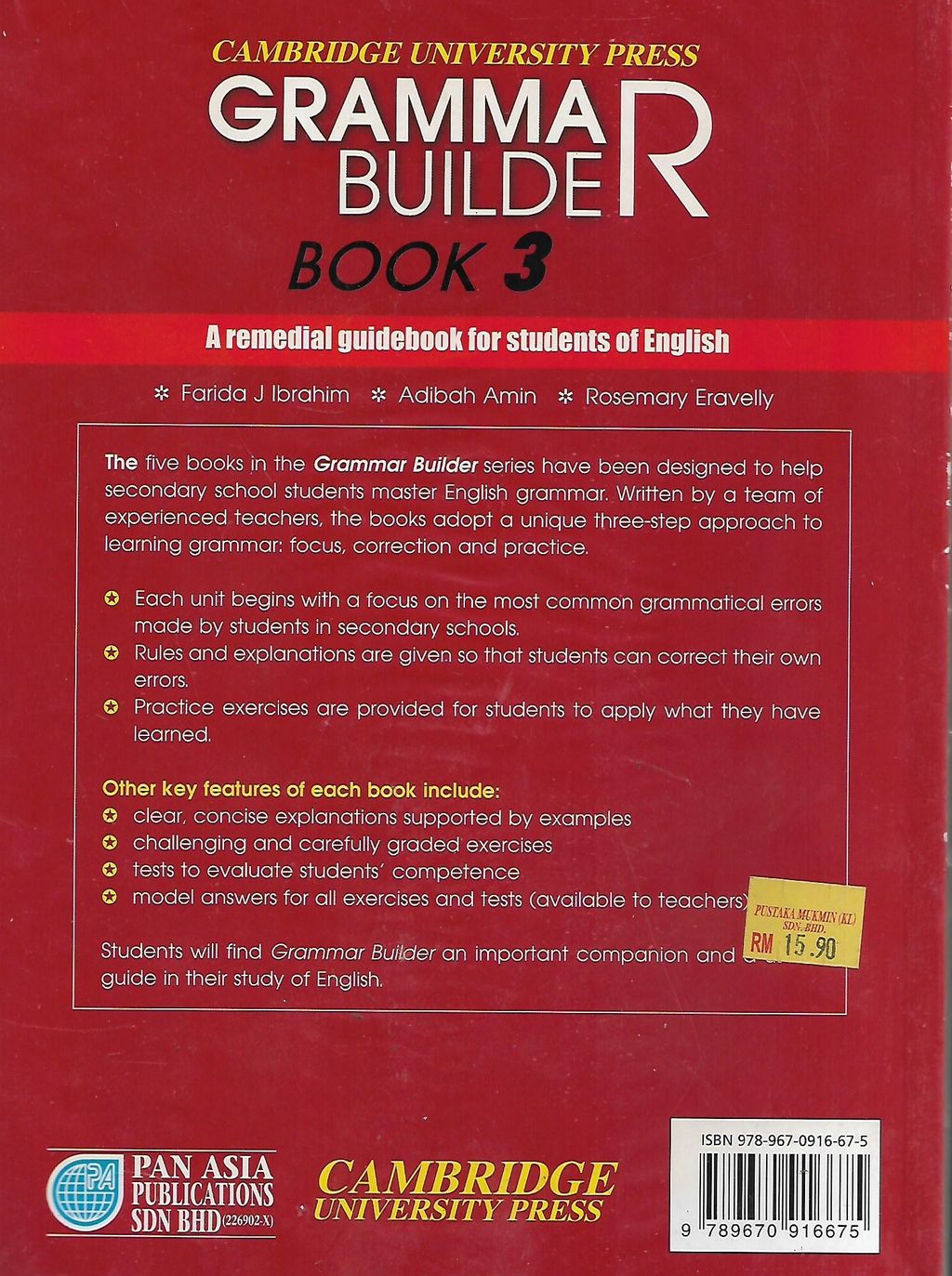 The five books in the Grammar Buider series have been designed to help secondary school student master English grammar. Written by a team of experienced teachers, the books adapt a unique three-step approach to learning grammar: focus, correction and practice.